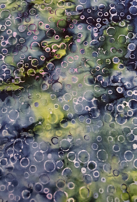 Batik Printed Palette 2019 is a collection of 100% cotton premium printed batiks from Indonesia, ideal for quilting or other fabric crafts. BA500 has lilac bubbles on a purple and yellow background..