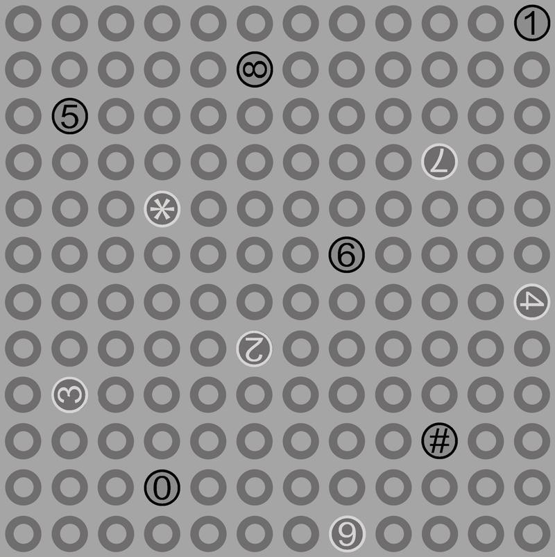 Ring Ring by Hoodie Crescent. Dark grey circles on a light grey background. Hints of typewriter number keys with this one.