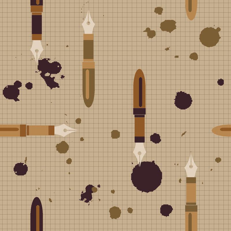 Ring Ring by Hoodie Crescent. Quirky retro fountain pens and ink splotches in shades of brown. Be careful not to blot your copy book with this one!
