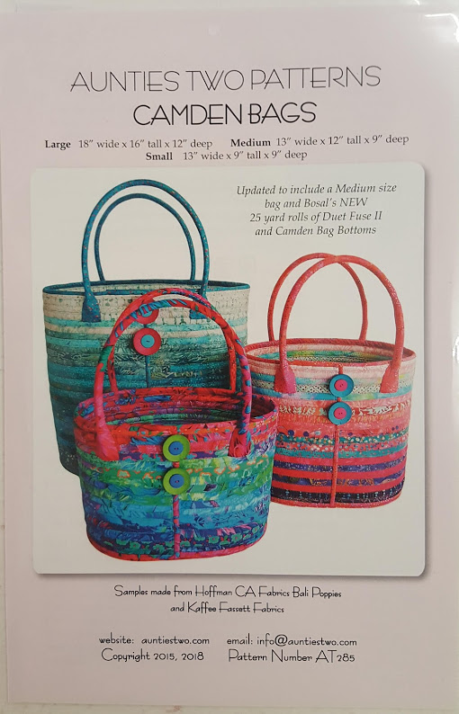 The Camden Bags from Two Aunties come in three sizes, making for versatile and attractive storage, and can easily be made from bought fabric or your scraps.