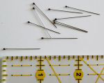I have never before worked with a pin that is this thin. It is very, very skinny and very sharp. You can see the size in the photograph. Because the head on these pins is so small I find that I like to spill the pins onto a piece of felt, making it easier to pick them up. There are 45 pins in each little plastic tube.