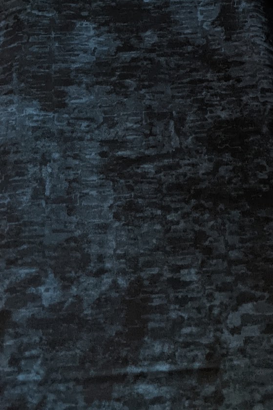 A bark pattern of dark blue on a mid-blue background, also looks like an abstract water pattern.. 112cm wide