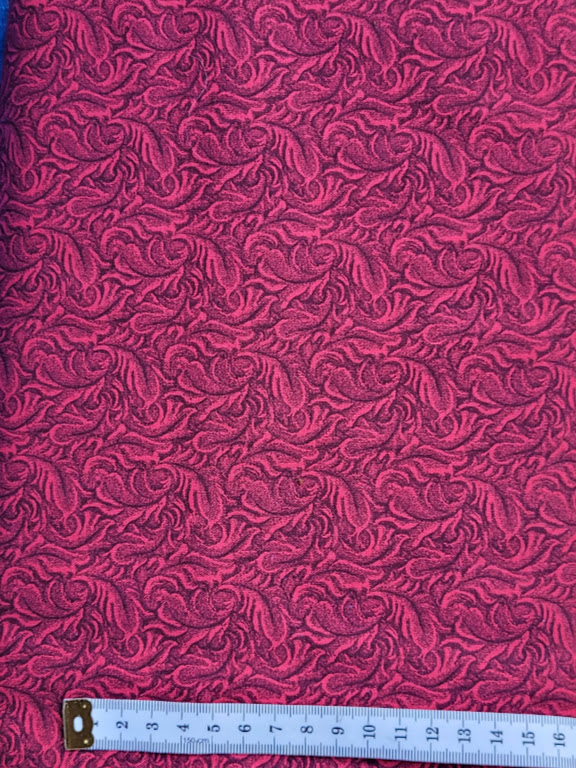 All over mid and darker pink stylised leaves with black detail