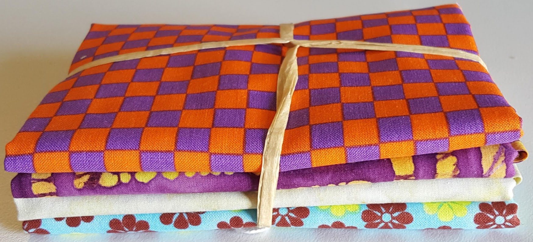 Four slices, 30cm by width of fabric, an almost retro look at the seventies in purple, orange, yellow, brown and light teal.